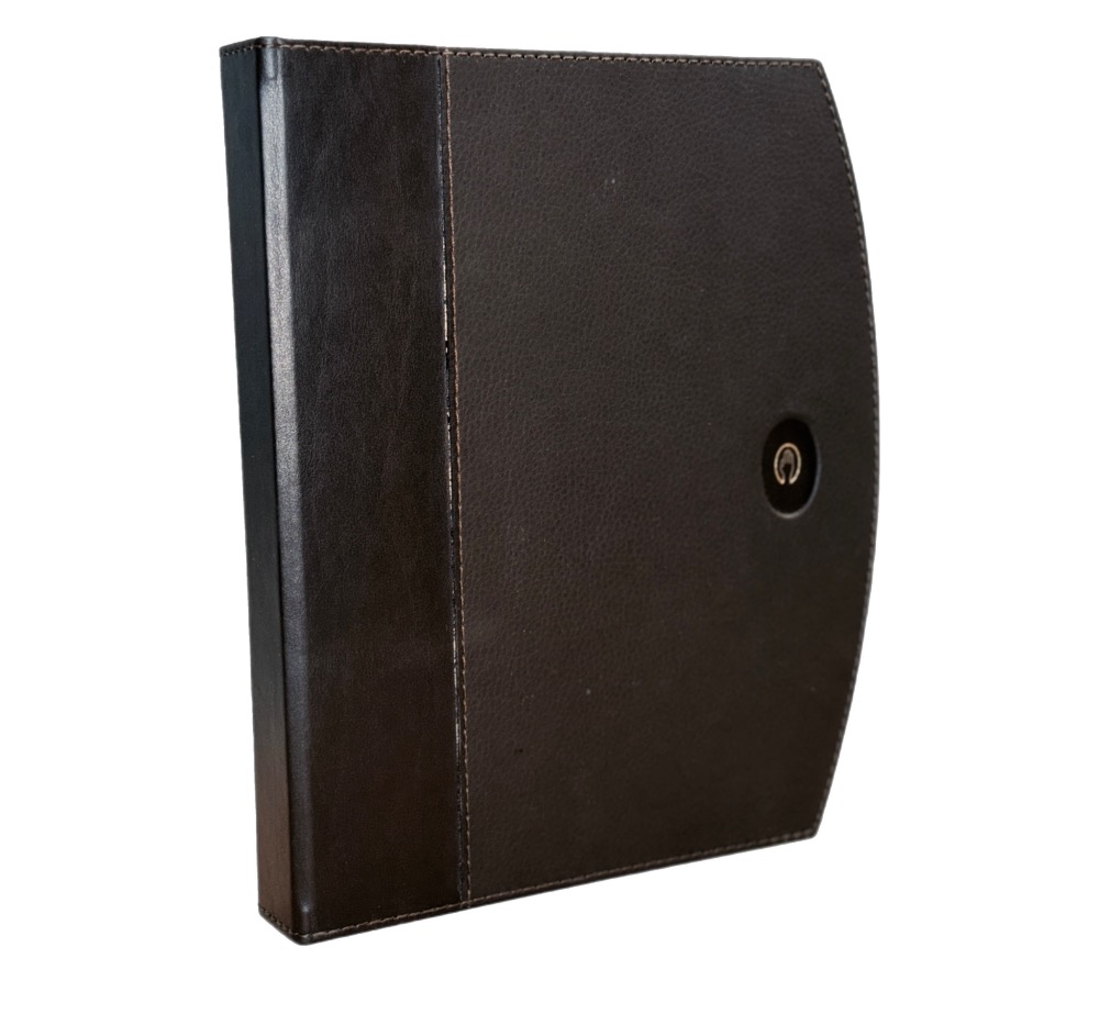 Carpeta fabricada en vinipiel color moka en tamaño carta. Venta Final.