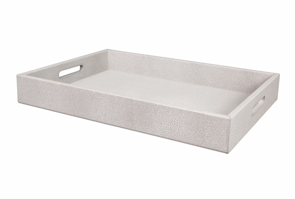 Charola rectangular fabricada en cuero recuperado con agarradera.