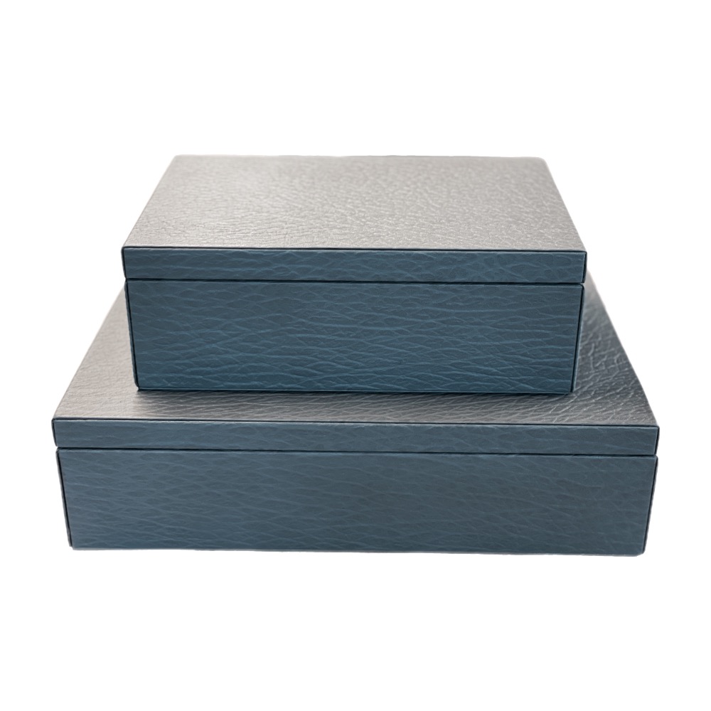 Juego de dos cajas decorativas forradas de piel.