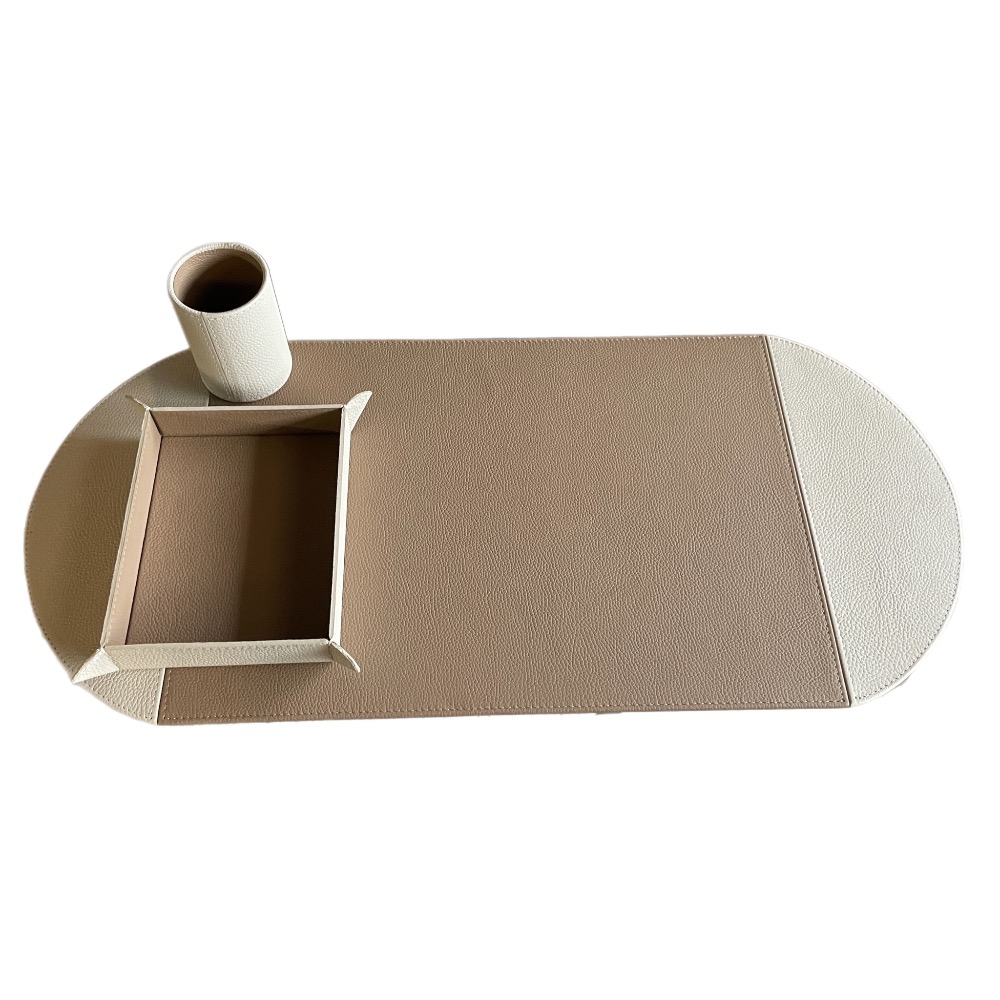 Juego de escritorio elaborado con dos colores de piel, incluye: