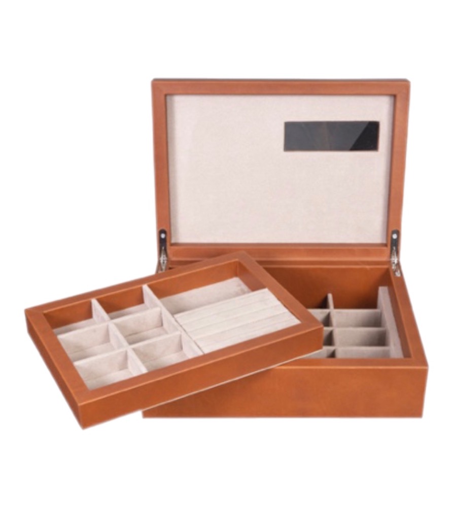 Pieza fabricada a mano por artesanos en piel en la parte exterior y por dentro gamuza sintética. Es ideal para guardar tu joyería. EN TODOS LOS PRODUCTOS DE OUTLET NO HAY CAMBIOS NI DEVOLUCIONES. ES COMPRA FINAL.