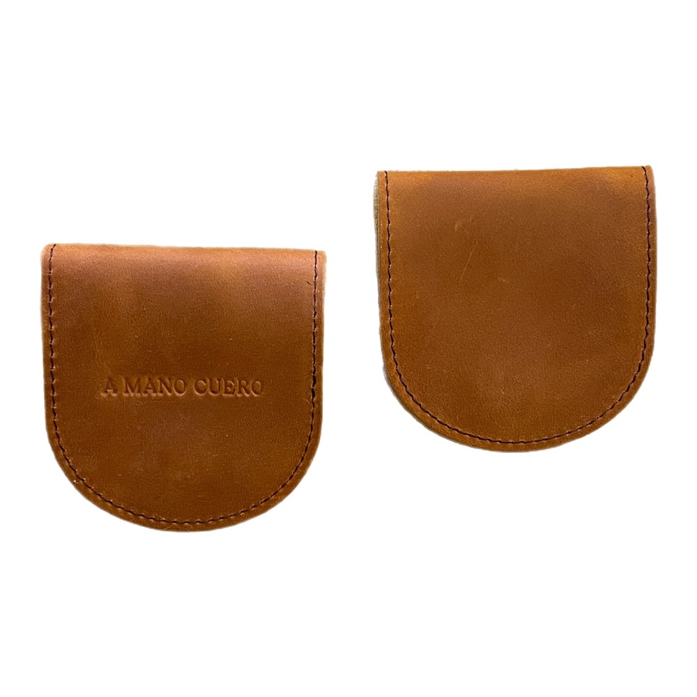 Pequeño monedero de piel con broche oculto para evitar que se salgan las monedas.