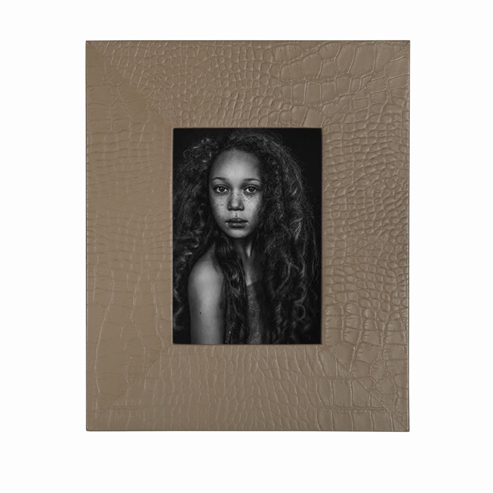 Portarretrato elaborado en cuero recuperado ideal para fotografía de tamaño 5x7.